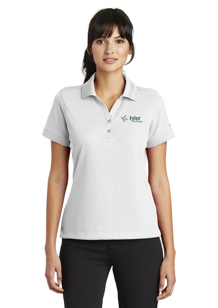 Nike Golf is known for classic sport shirts engineered to take comfort to the next level. The Dri-FIT fabric technology delivers superior moisture management, while the stitch-trimmed shoulder panels and gussets make a distinctive difference. Flat knit collar. Tailored for a feminine fit with a two-button Y-placket and rib knit cuffs. Pearlized buttons are selected to complement the shirt color. The contrast Swoosh design trademark is embroidered on the left sleeve. Made of 4.7-ounce, 100% polyester Dri-FIT fabric.