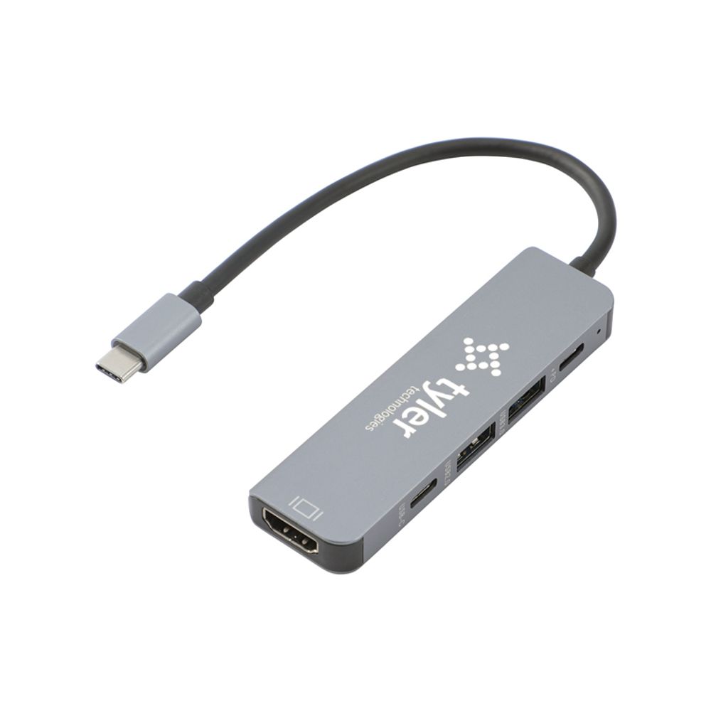 Features 4 ports: USB-C to HDMI (up to 4K@30Hz), USB-C 2.0, USB 3.0, and USB 2.0 for versatile connectivity